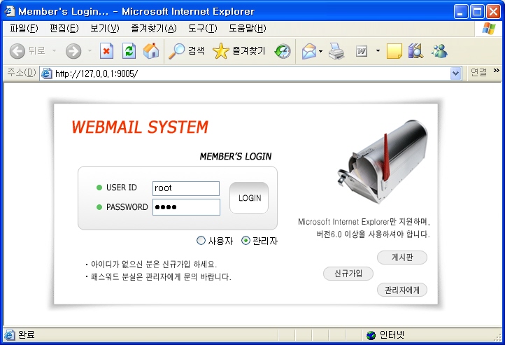 http://127.0.0.1:9005 ·Î Á¢¼ÓÇÑ ´ÙÀ½ °ü¸®ÀÚ·Î ·Î±×ÀÎÇϼ¼¿ä.