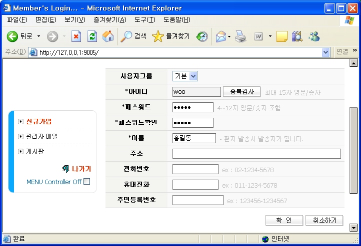 http://127.0.0.1:9005 ·Î Á¢¼ÓÇÑ ´ÙÀ½ ½Å±Ô°¡ÀÔÀ» ÇØ¼ °èÁ¤À» ¸¸µå¼¼¿ä.